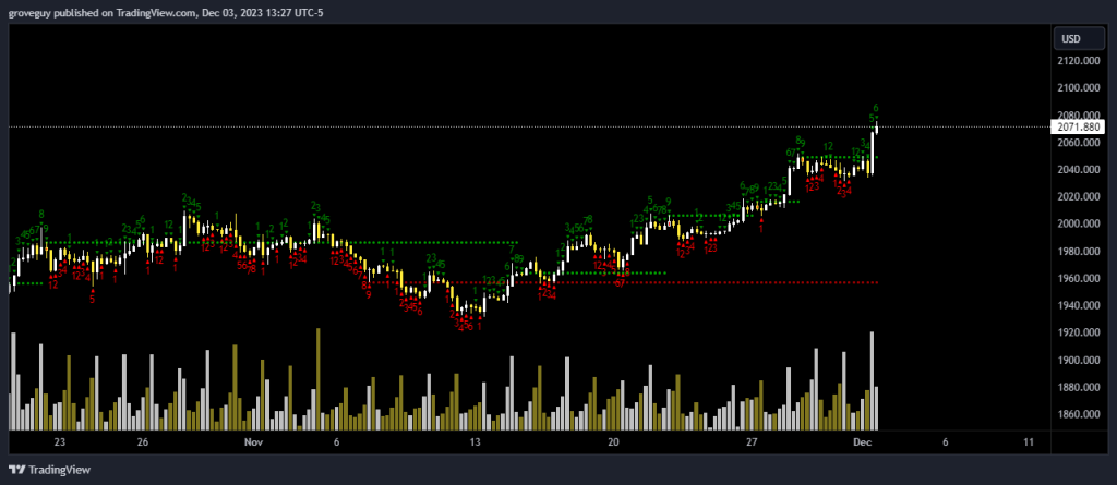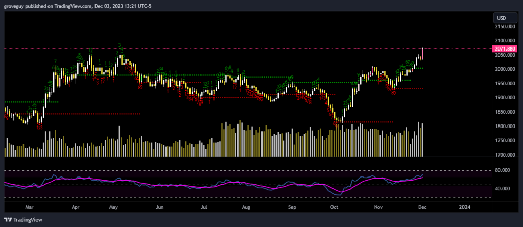 Gold needs to close above 2081.82 on the weekly by the end of next week, however the RSI needs to be above 66.14 to avoid any divergence.