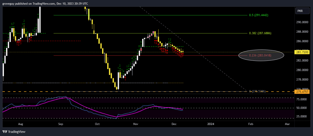 PKR experienced a weekly increase of Rs1.09 in value relative to the US dollar through weekly interbank trading. Weekly session at PKR 283.87, up from PKR 284.12 the day before.
